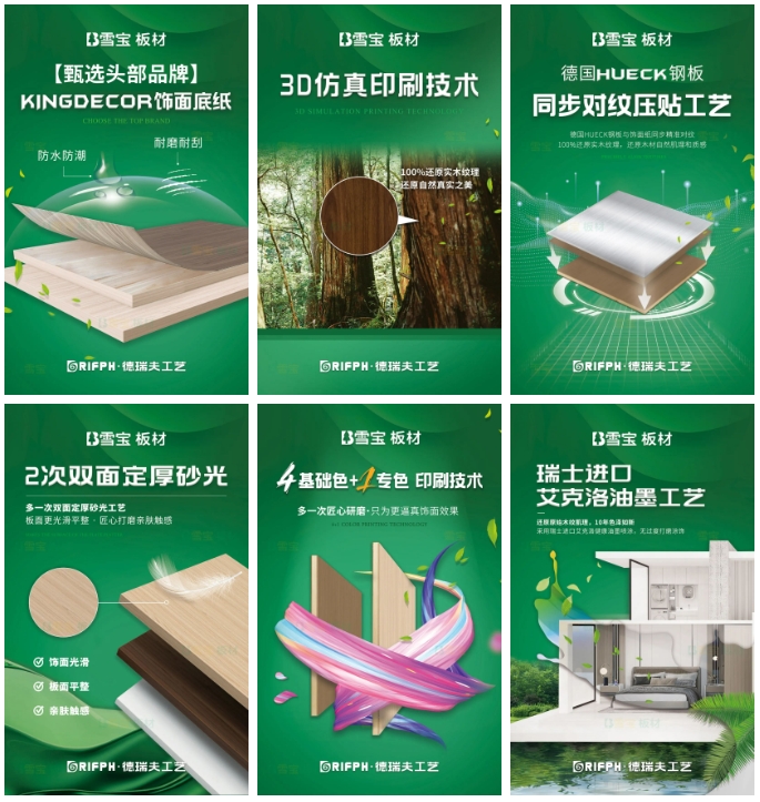 同時(shí)嚴(yán)選優(yōu)質(zhì)的底紙和油墨,且融合自研首創(chuàng)且品牌獨(dú)有的雪寶DRIFPH德瑞夫6大領(lǐng)先工藝,讓我們的板材飾面效果100%還原實(shí)木紋理,家裝整體更加有質(zhì)感。無論是哪個(gè)角度“望聞問切”都可以做到非常出色,真正做到了讓消費(fèi)者放心選擇。